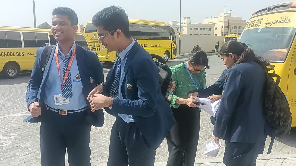 Tense faces this morning at Bhavans Pearl Wisdom School, Dubai, as students headed for their exams.