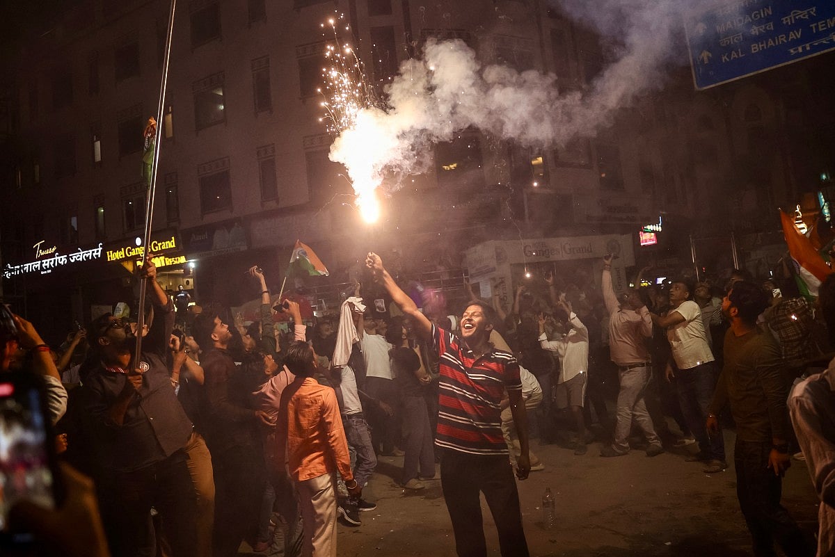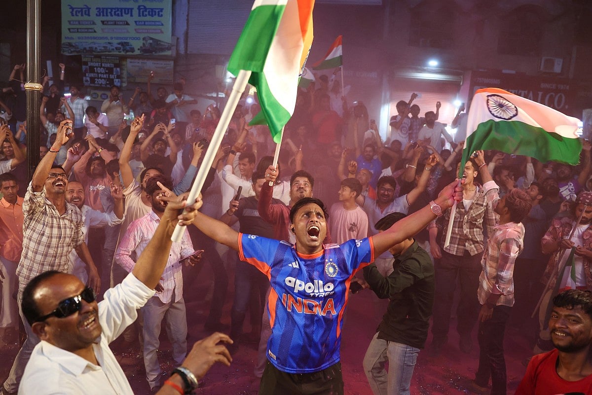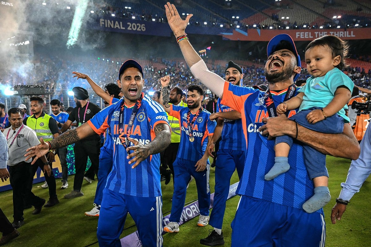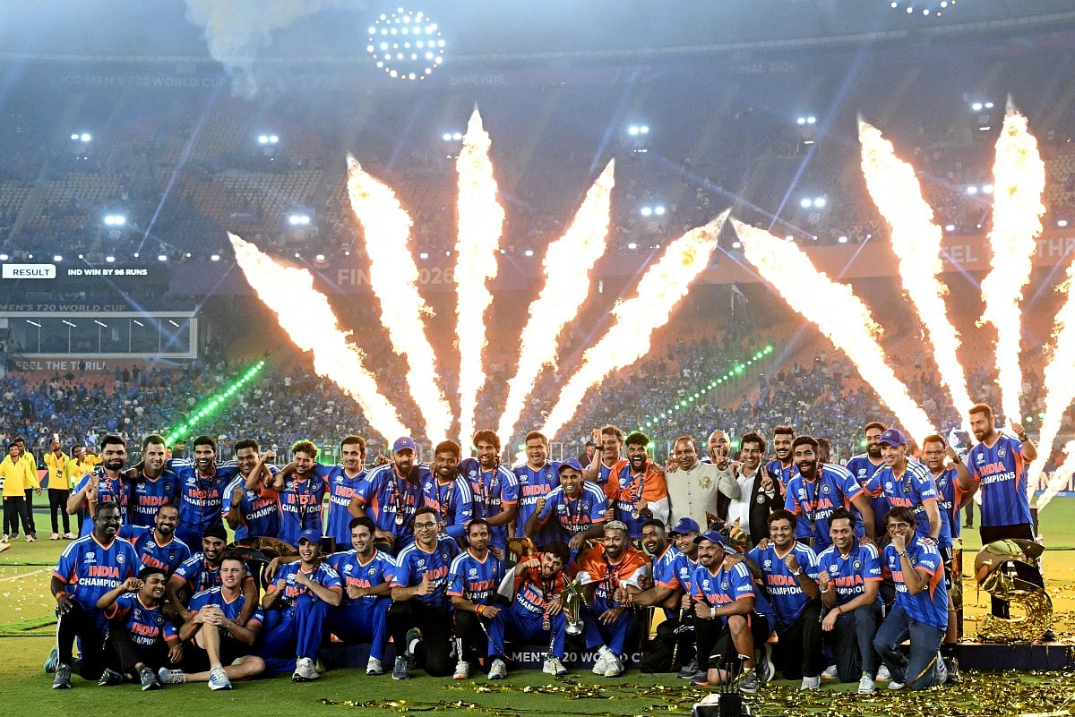 Fans wave Indian flags and cheer inside the Narendra Modi Stadium as India defeat New Zealand to secure their third ICC T20 World Cup title in front of more than 90,000 spectators.Indian cricket fans wave the national flag as they celebrate their team’s victory over New Zealand in the 2026 ICC Men’s T20 World Cup final, on a street in Varanasi, India, on March 8, 2026.India’s Arshdeep Singh (R), Ishan Kishan (L) and Abhishek Sharma (front) dance during a victory lap after winning the 2026 ICC Men’s T20 Cricket World Cup final match against New Zealand at the Narendra Modi Stadium in Ahmedabad on March 8, 2026.Indian cricket fans burst firecrackers as they celebrate their team’s victory in the 2026 ICC Men’s T20 Cricket World Cup final match against New Zealand.India’s captain Suryakumar Yadav (L) and his teammate Axar Patel (R) celebrate during a victory lap after winning the 2026 ICC Men’s T20 Cricket World Cup final match against New Zealand at the Narendra Modi Stadium in Ahmedabad on March 8, 2026.Indian supporters celebrate long after the final ball as the team seals a dominant 96-run victory to lift the trophy.People celebrate India’s victory over New Zealand in the ICC Men’s T20 Cricket World Cup 2026 final, in Prayagraj.Celebrations erupt as supporters cheer India’s victory over New Zealand in the ICC Men’s T20 World Cup 2026 final.People celebrate India’s victory over New Zealand in the ICC Men’s T20 Cricket World Cup 2026 final match at India Gate in New Delhi on March 9, 2026.Sanju Samson acknowledges the roaring crowd after his explosive 89 off 46 balls powers India to a massive score in the championship match.India’s Jasprit Bumrah celebrates after taking the wicket of New Zealand’s Matt Henry during the 2026 ICC Men’s T20 Cricket World Cup final match between India and New Zealand at the Narendra Modi Stadium in Ahmedabad.Indian cricketer Hardik Pandya (L) along with his girlfriend and model Mahieka Sharma (2L) celebrates after India’s win.New Zealand’s captain Mitchell Santner (R) watches the ball after playing a shot during the 2026 ICC Men’s T20 Cricket World Cup final match between India and New Zealand at the Narendra Modi Stadium in Ahmedabad on March 8, 2026.India’s players celebrate with the trophy after winning the 2026 ICC Men’s T20 Cricket World Cup final match between India and New Zealand at the Narendra Modi Stadium in Ahmedabad on March 8, 2026.