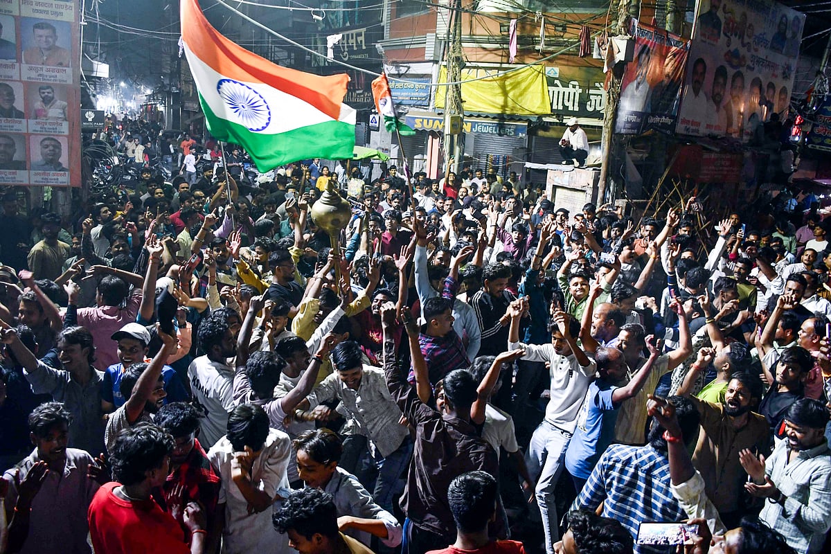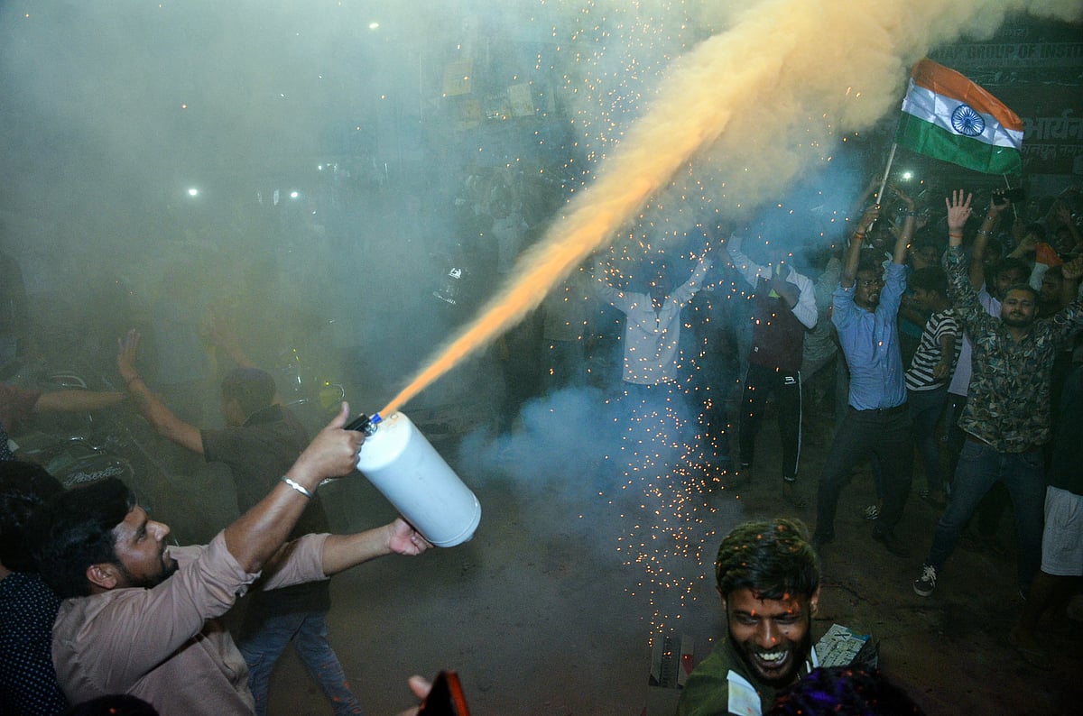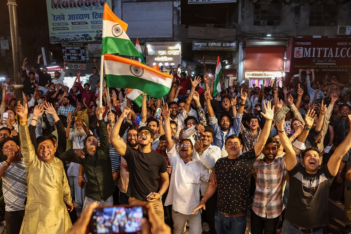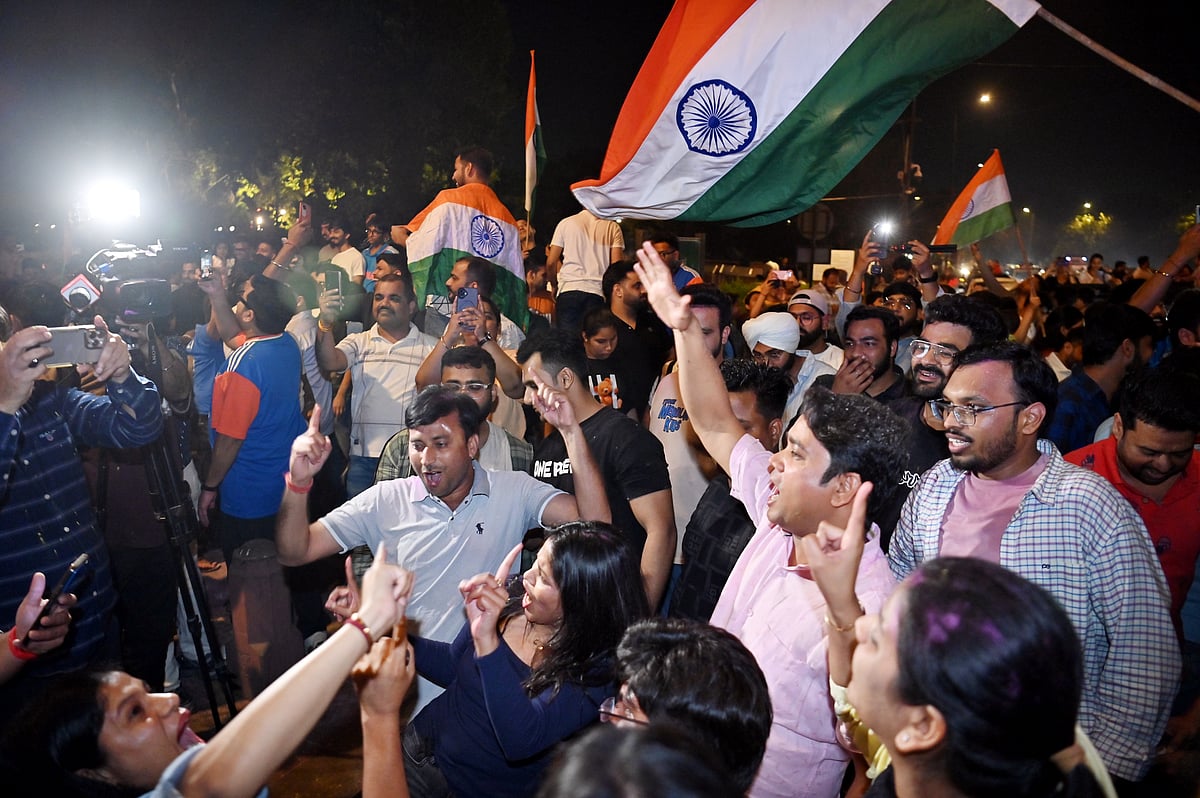 Fans wave Indian flags and cheer inside the Narendra Modi Stadium as India defeat New Zealand to secure their third ICC T20 World Cup title in front of more than 90,000 spectators.Indian cricket fans wave the national flag as they celebrate their team’s victory over New Zealand in the 2026 ICC Men’s T20 World Cup final, on a street in Varanasi, India, on March 8, 2026.India’s Arshdeep Singh (R), Ishan Kishan (L) and Abhishek Sharma (front) dance during a victory lap after winning the 2026 ICC Men’s T20 Cricket World Cup final match against New Zealand at the Narendra Modi Stadium in Ahmedabad on March 8, 2026.Indian cricket fans burst firecrackers as they celebrate their team’s victory in the 2026 ICC Men’s T20 Cricket World Cup final match against New Zealand.India’s captain Suryakumar Yadav (L) and his teammate Axar Patel (R) celebrate during a victory lap after winning the 2026 ICC Men’s T20 Cricket World Cup final match against New Zealand at the Narendra Modi Stadium in Ahmedabad on March 8, 2026.Indian supporters celebrate long after the final ball as the team seals a dominant 96-run victory to lift the trophy.People celebrate India’s victory over New Zealand in the ICC Men’s T20 Cricket World Cup 2026 final, in Prayagraj.Celebrations erupt as supporters cheer India’s victory over New Zealand in the ICC Men’s T20 World Cup 2026 final.People celebrate India’s victory over New Zealand in the ICC Men’s T20 Cricket World Cup 2026 final match at India Gate in New Delhi on March 9, 2026.Sanju Samson acknowledges the roaring crowd after his explosive 89 off 46 balls powers India to a massive score in the championship match.India’s Jasprit Bumrah celebrates after taking the wicket of New Zealand’s Matt Henry during the 2026 ICC Men’s T20 Cricket World Cup final match between India and New Zealand at the Narendra Modi Stadium in Ahmedabad.Indian cricketer Hardik Pandya (L) along with his girlfriend and model Mahieka Sharma (2L) celebrates after India’s win.New Zealand’s captain Mitchell Santner (R) watches the ball after playing a shot during the 2026 ICC Men’s T20 Cricket World Cup final match between India and New Zealand at the Narendra Modi Stadium in Ahmedabad on March 8, 2026.India’s players celebrate with the trophy after winning the 2026 ICC Men’s T20 Cricket World Cup final match between India and New Zealand at the Narendra Modi Stadium in Ahmedabad on March 8, 2026.