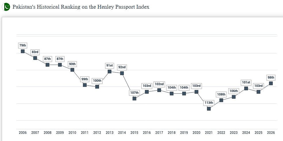 Pakistan passport climbs in 2026: Now ranks 98th worldwide with new visa-free access