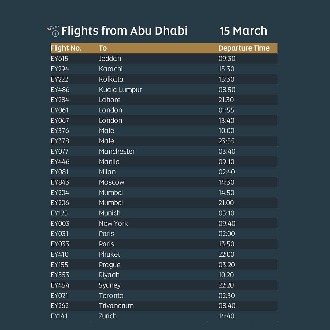 Passengers should not travel to the airport unless they hold a confirmed booking or have been contacted by Etihad.